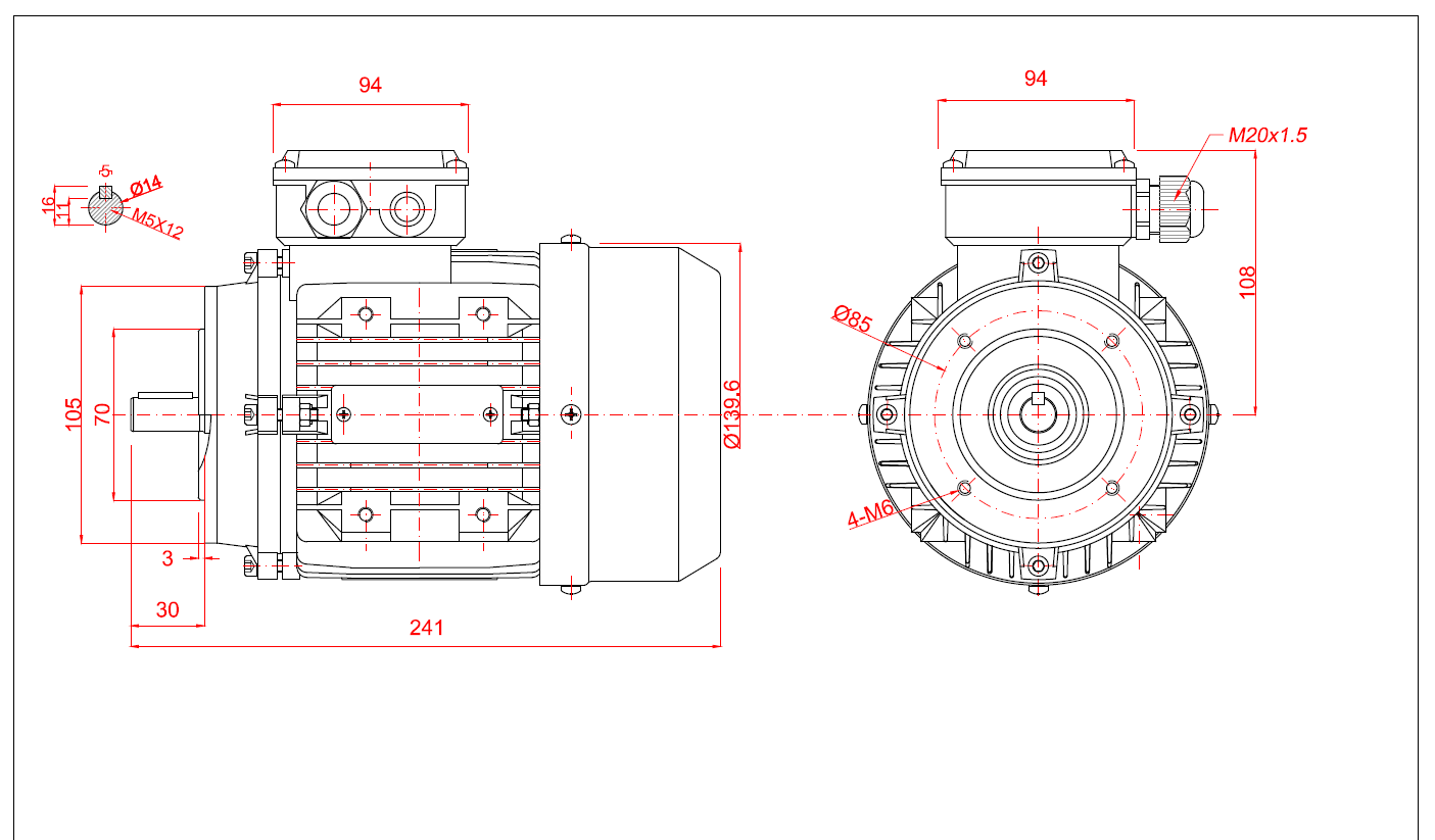 Specificații Tehnice Motor electric trifazat 0.55kw 3000rpm 71 B14